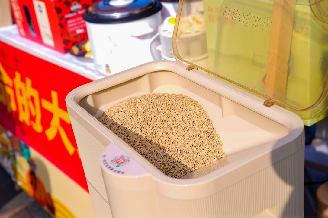 除此以外,市集还设置了现磨大米展位,带给市民全新的逛展体验。在佳鲜坊摊位前,新鲜碾磨的五常稻花香大米香气四溢,引来众多市民争相购买。“我们的大米不添加任何蜡质,经过严格筛选,保留了胚芽和膳食纤维,营养价值更高。”公司总经理刘瑜表示。