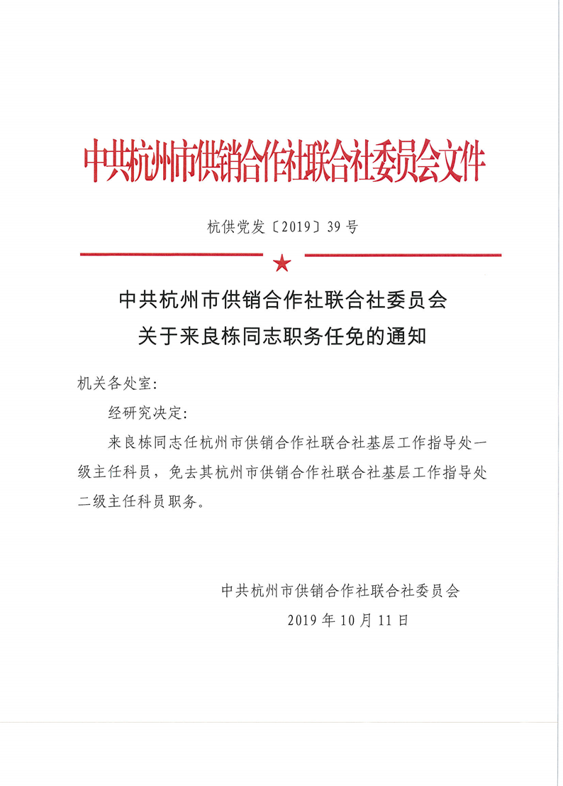 关于来良栋同志职务任免的通知-铭牌棋牌